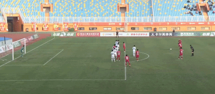 第72分钟,贾晓琛主罚任意球轰世界波,青岛红狮1-4扳回一城!