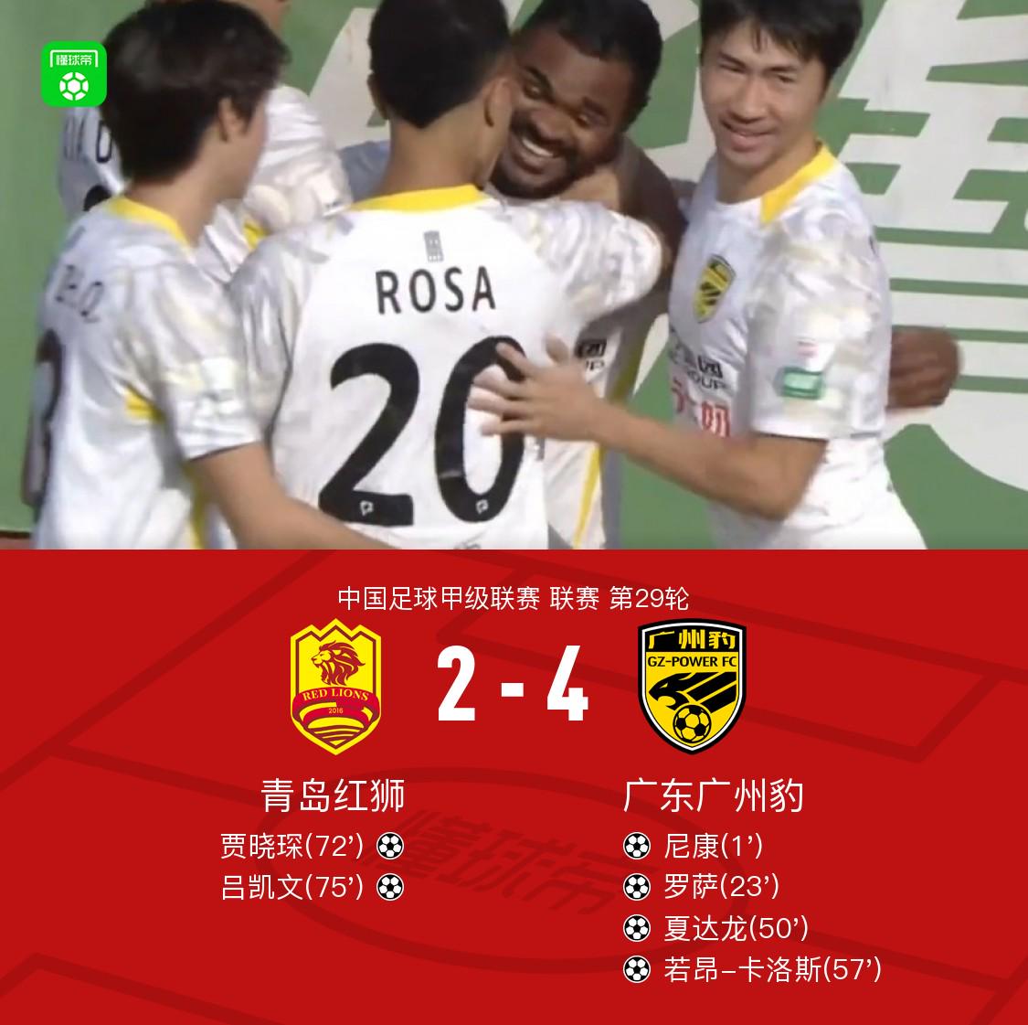 第23分钟,尼康分球,罗萨低射破门,广东广州豹2-0!